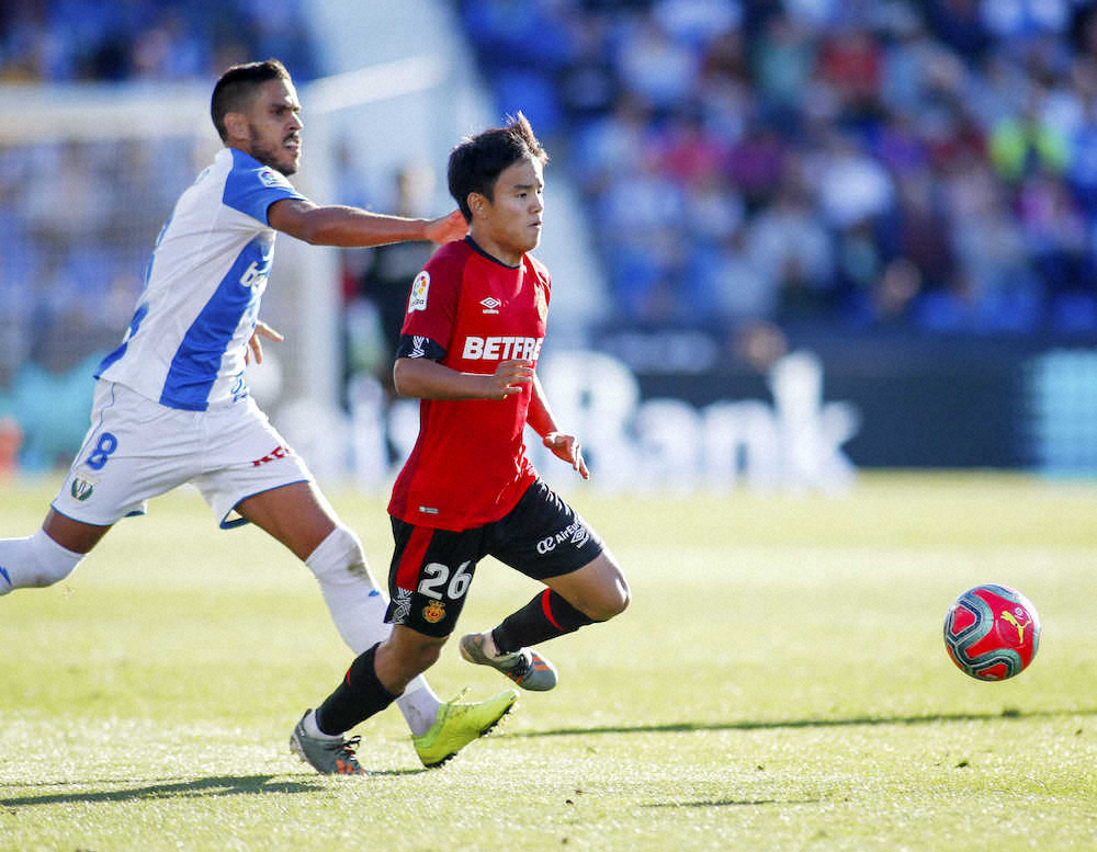 レガネス戦の後半、競り合うマジョルカの久保建(右)