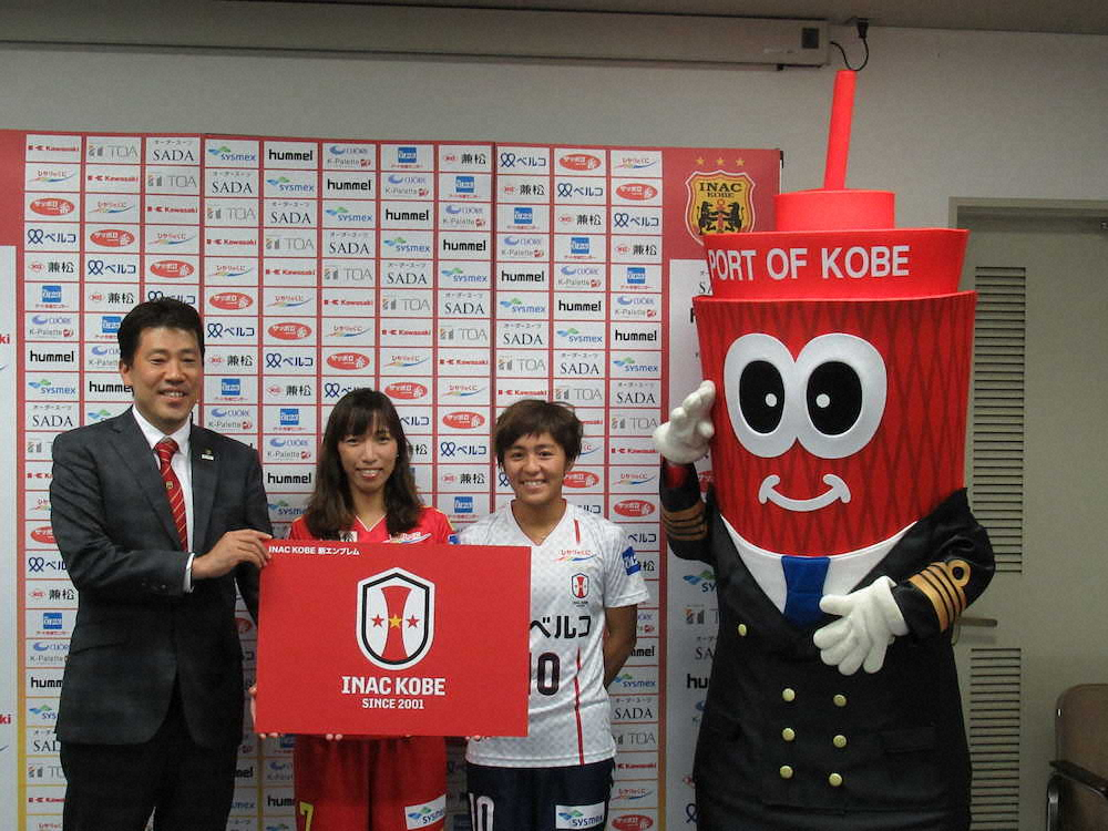 なでしこリーグ1部のINAC神戸は24日、神戸市内で新エンブレムと来季ユニホームの発表会見を開いた。01年に誕生したクラブは、20年度に20年目のシーズンを迎える。神戸の象徴として親しまれる神戸ポートタワーをモチーフとし、チームエンブレムを一新。今季は無冠に終わっただけに、安本卓史社長は「神戸の象徴として、もう一度、タイトルを目指したい」と決意表明した。