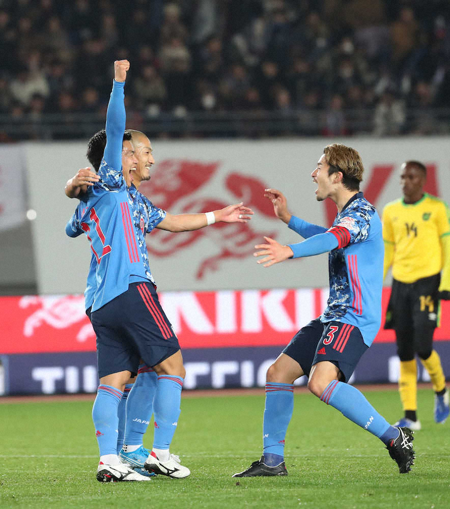 <U―22日本・U―22ジャマイカ>日本の9発(2)旗手(左)のゴール(撮影・岡田 丈靖)