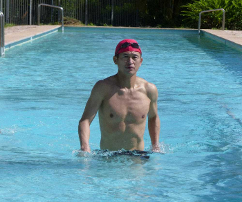 気温が30度を超す午前はパス、アジリティーを中心に汗を流す。午後は室内の器具を使い、体の隅々まで鍛え抜いた。カズにとって、この日は20年の本格始動。早速、怒とうの3部練習だ。昼食前にはリカバリーも兼ねたスイムも。かつて苦手だった水泳だが、独自の努力で上達。完璧な肉体美と潜水、見事なクロールを披露した。