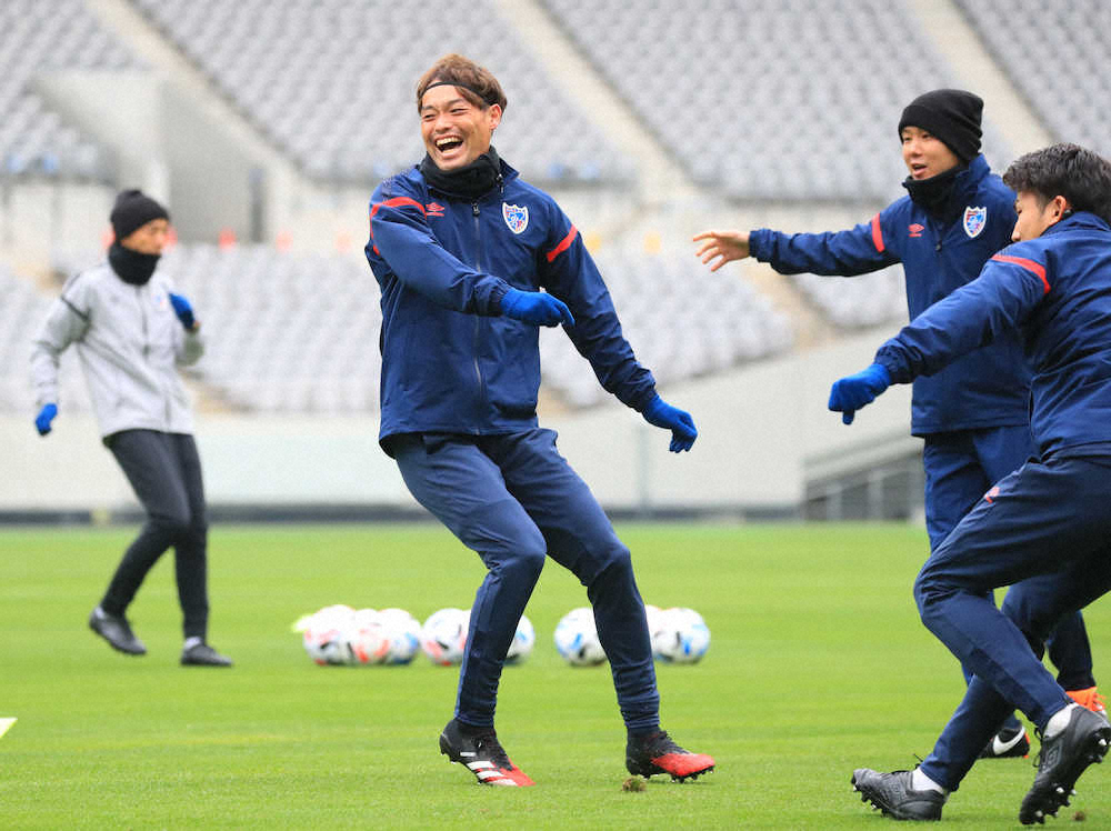 肌寒い空気を切り裂くように、FC東京の選手たちの明るい声がスタジアムに響いた。前日練習で冒頭15分が報道陣に公開され、青赤軍団は久々の本拠の芝を確かめるようにボール回しなどを行った。主将の東も笑顔で、リラックスした様子だった。