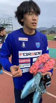FKの名手にとってスパイクは体の一部だ。「足首に負担がかからないようにポイントを低く削って、イボ(ポイント)が多いのを履いている」。工具も自身で購入した。感覚を信じ、一足ごとにミリ単位で削る。ポイントが低ければグリップ力は落ちるが、足首への負担は減る。編み出したのはマラソン界を席巻する「厚底」とは逆の「薄底」スパイクだ。