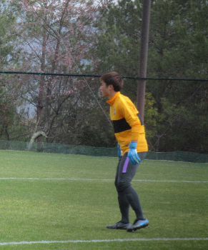 大宮 選手取材は約20メートル離れクラブの携帯電話を使って