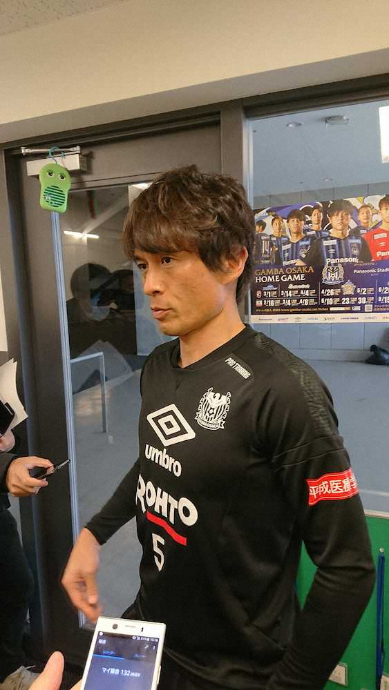 Jリーグの再々延期を受け、取材に応じるG大阪の宮本監督