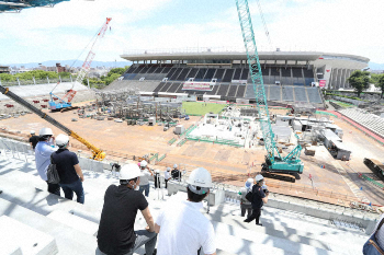 C大阪の新たな本拠地が報道陣に公開された。かつてのキンチョウスタジアムが生まれ変わる「桜スタジアム」は現在、来年3月の完成に向けて改修工事のまっただ中。進捗(しんちょく)状況は6割程度で、新たに建設募金団体の代表理事に就いた森島社長は「ラストスパートのところで就任して身が引き締まる思い。先頭に立ってやっていきたい」と所信表明した。
