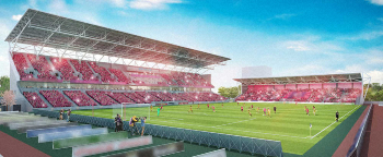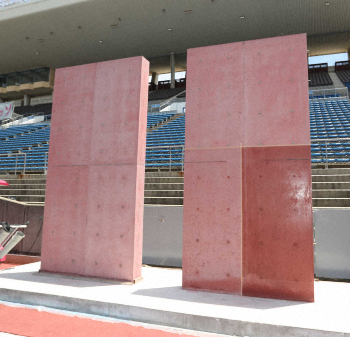 ACLにも対応した収容人数2万5000人の球技専用スタジアムで、売りとしているのがピッチとスタンドの距離が最も近いところで約5・8メートルという臨場感。加えて、この日に初めてお披露目されたのがピンク色のコンクリートだ。後から塗料で染めるのではなく、コンクリートそのものにC大阪のクラブカラーを着色。まだ試作段階ながら、選手が入場するゲートの両サイドに打ち付けられる予定で、同色で作られるコンクリートは「日本で初めてだと思います」と工事関係者は説明した。