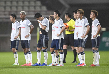 鹿島に敗れ、肩を落とす横浜Mイレブン