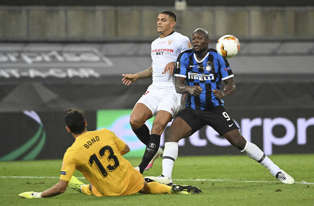 インテルFWルカクの(右)の絶好機を阻んだセビリア守護神ボノ(AP)