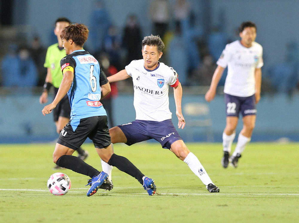 <川崎F・横浜FC>ボールを追う三浦知良(撮影・篠原岳夫)