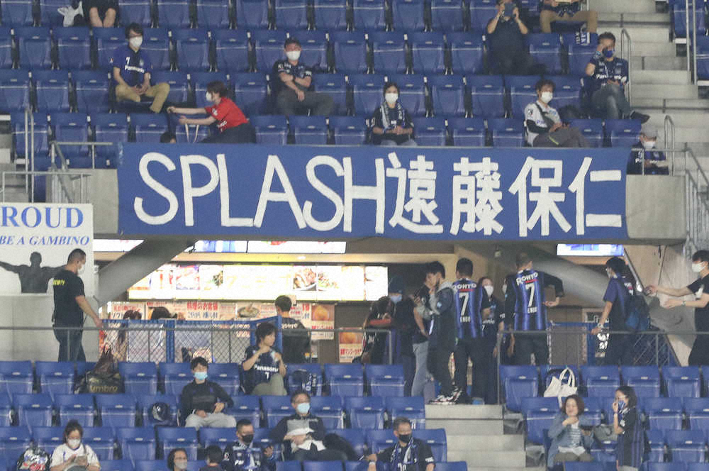 <G大阪・鹿島>  スタンドには遠藤の横断幕      (撮影・成瀬 徹)