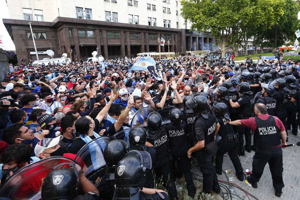 マラドーナ氏死去 アルゼンチンで一般弔問 棺に投げキッス、ファン殺到で警察が催涙ガス使用も