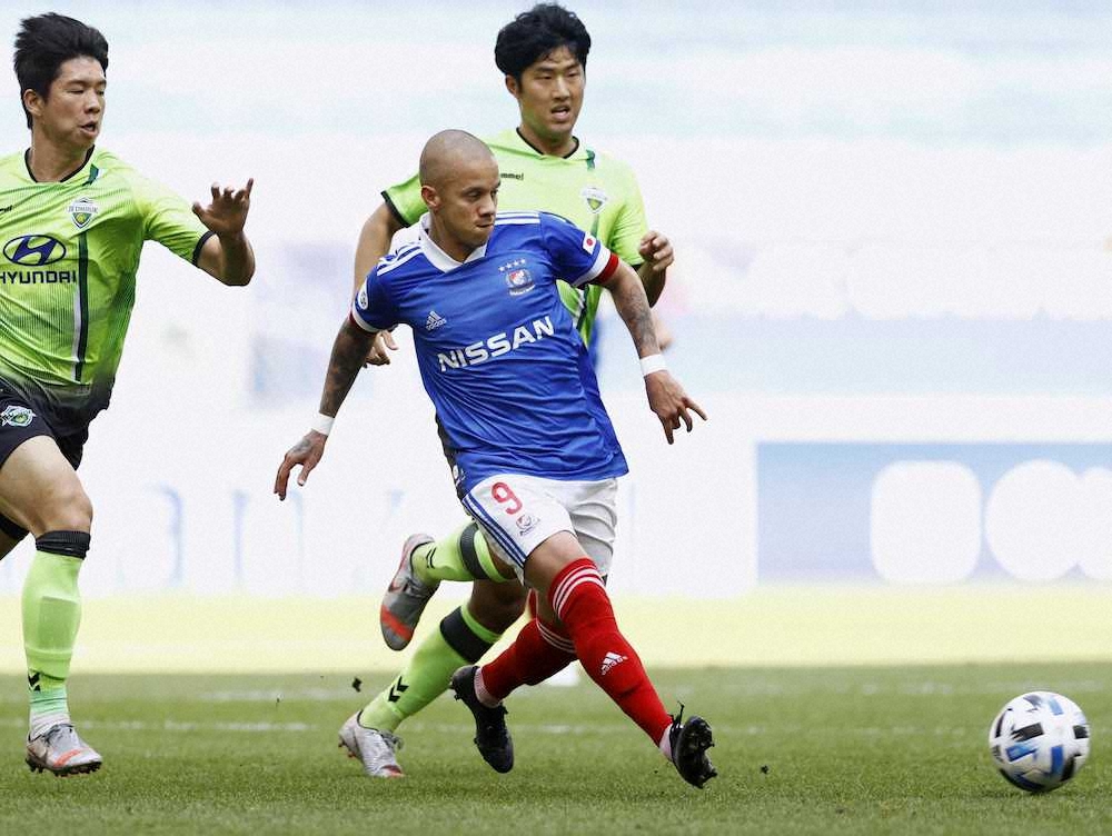 攻め込む横浜のマルコス・ジュニオール(手前)(横浜提供)
