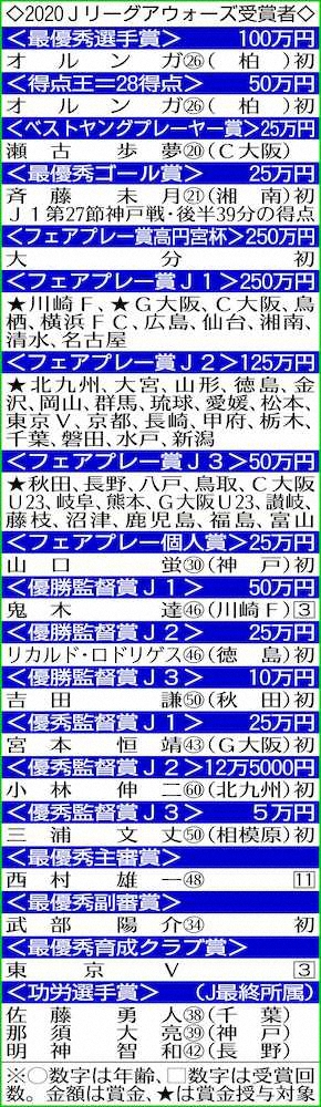 Jリーグ歴代最優秀選手賞 Photo by スポニチ 2020ベストイレブン ほぼ川崎F、史上最多9人 新人で4人目の三笘「凄く光… ギャラリーで見る この記事のフォト 2020年12月23日の画像一覧 もっと見る 2020年12月23日の画像をもっと見る