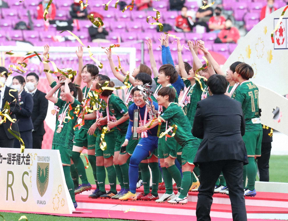 浦和とは皇后杯で計8度対戦し、全勝。リーグ戦は3位で終えたが、一発勝負では今季も勝負強さを見せつけた。「来年からはWEリーグが始まる。それに向けていいスタートが切れた」とDF清水主将。有終の美を飾った。