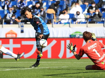 川崎Fは前半29分、左サイドからMF田中碧(22)のパスをペナルティーエリアの中で受けたMF三笘薫(23)が右足でゴール右へと突き刺し先制。32分にも、右サイドからのDF山根視来(27)のシュートをゴール左前にいた三笘が右足で押し込み加点した。チームは昨季限りで18年間チームを支えた元日本代表MF中村憲剛氏(40)が引退。攻守のキーマンだったMF守田英正(25)もポルトガル1部へと移籍したが、昨季リーグで新人最多の13得点を挙げ、元日の天皇杯決勝でもG大阪相手に決勝点を叩き込んだ若きスターがこの日も存在感を見せつけた。