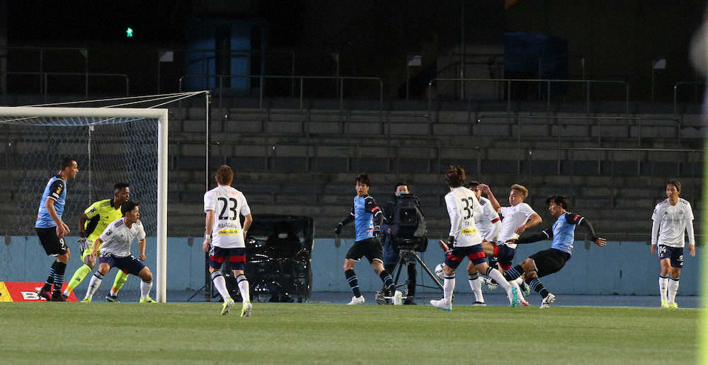 <川崎F・横浜>前半、自身1得点目のゴールを決める川崎F・家長(左から2人目)(撮影・西海健太郎) Photo by スポニチ 2021年J1開幕!家長が第1号ゴール、川崎F選手では初 ギャラリーで見る この記事のフォト 2021年02月26日の画像一覧 もっと見る 2021年02月26日の画像をもっと見る