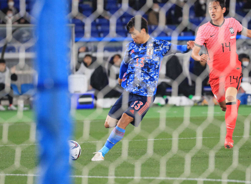 <日本・韓国>前半、ゴールを決め喜ぶ山根視来(撮影・西海健太郎) Photo by スポニチ 【日韓戦】日本代表初招集の山根がデビュー戦で先制ゴール 森保監督の抜… ギャラリーで見る この記事のフォト 2021年03月25日の画像一覧 もっと見る 2021年03月25日の画像をもっと見る