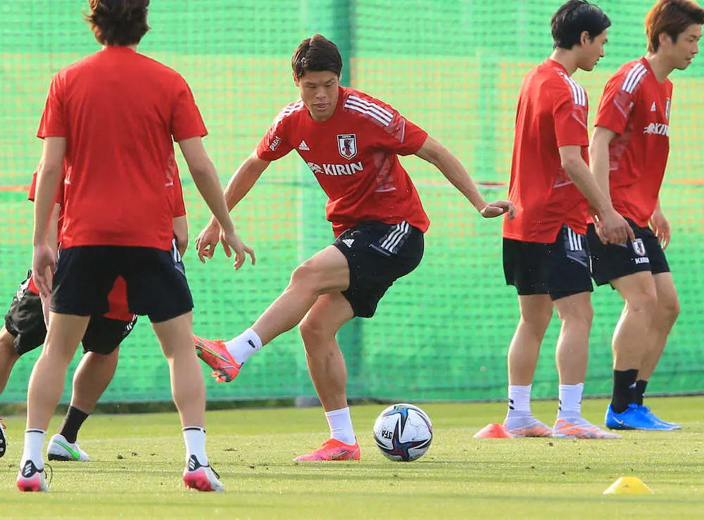 <日本代表練習>ボール回しをする酒井