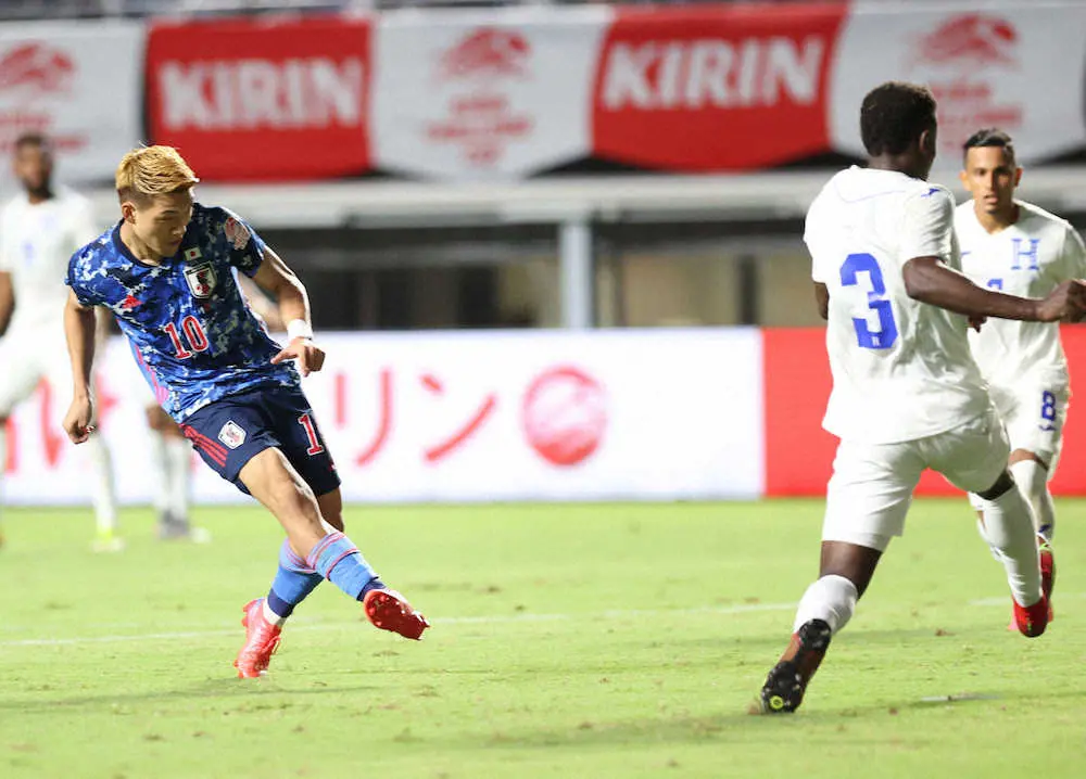 <日本・ホンジュラス>前半、ゴールを決めてガッツポーズの堂安(撮影・北條 貴史) Photo by スポニチ U24日本代表 堂安2発でホンジュラス撃破!東京五輪“試金石”となる一戦を制す ギャラリーで見る この記事のフォト 2021年07月12日の画像一覧 もっと見る 2021年07月12日の画像をもっと見る