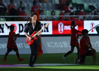 試合後にオンラインで対応した岡島チェアは「ファンの方々に喜んでもらえた試合になった。この盛り上がりをいかに続けていくか」と課題も口にした。また、INAC神戸―大宮戦の前には93年のJリーグ開幕時と同様、ロックバンド「TUBE」のギタリスト春畑道哉がリーグのテーマ曲を演奏した。