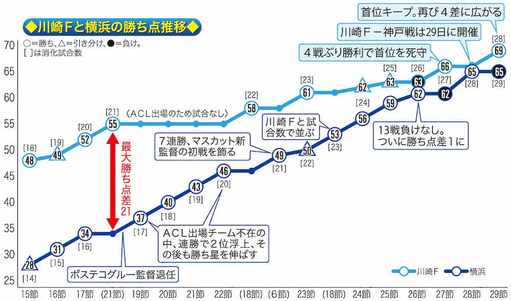 <徳島・川崎F>前半、勝ち越しゴールを決め喜ぶ川崎F・脇坂(左手前)ら Photo by 共同 川崎F“ACLショック”振り払う3発 陥落危機の一戦で首位守った 再び横浜引… ギャラリーで見る この記事のフォト 2021年09月19日の画像一覧 もっと見る 2021年09月19日の画像をもっと見る