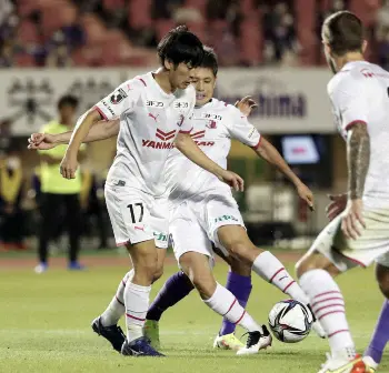 広島に勝利し、サポーターに手を振りながら引き揚げるC大阪・進藤
