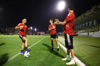 練習で汗を流す古橋(C)JFA
