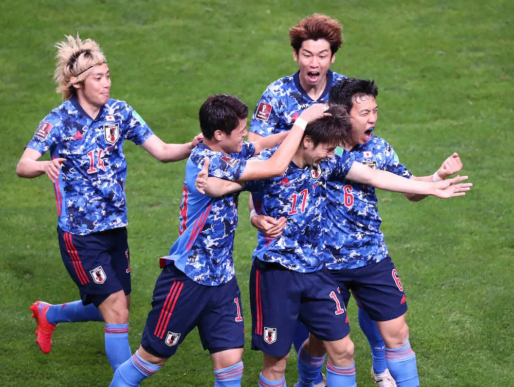 先発に抜てきされたMF田中碧(23)が、期待に応える代表初ゴールを決めた。前半8分、ペナルティーエリア右で南野のパスを受け、1トラップから右足を振り抜きゴール左隅に突き刺した。最終予選初出場で、チームに勢いをもたらす先制弾。力強いガッツポーズで喜びを爆発させた若き司令塔は「日本サッカーの進退も懸かっていた。この試合が終わって、引退してもいいやって思えるぐらい後悔のない試合をしたかった」とホッとした表情で振り返った。