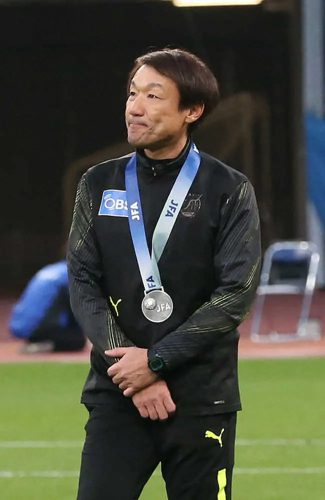<天皇杯決勝 浦和・大分>準優勝の表彰を受けた大分・片野坂監督(撮影・西海健太郎)