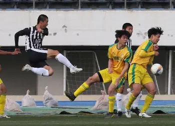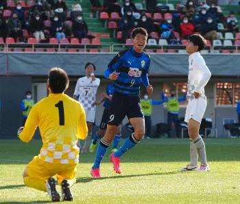 <流経大柏・近大和歌山>PK戦1本目をセーブする後迫 (撮影・長久保 豊)