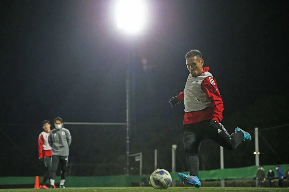 この日、練習前のジョギングでは先頭に立ち、メニューを消化する中でもいつも通りに周囲に声を掛けてポジティブな雰囲気をつくることに尽力。さらにサイドアタックの練習では中央への絶妙なクロスを連発し、言葉だけではなく、プレーでもチームをけん引する強い意志を示した。