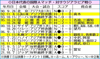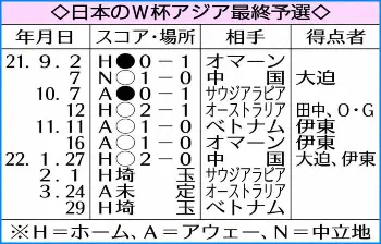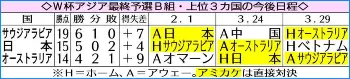 ▽B組3強の行方 1位のサウジアラビアは日本に勝てば、2試合を残してW杯出場が決まる。2位の日本はサウジアラビアに勝てば無条件で王手がかかる。次の3位オーストラリアとの敵地での直接対決に勝てば、W杯切符獲得となる。また、オーストラリアがオマーンに勝ち、日本がサウジアラビアに負けか引き分けで3位に転落した場合、逆にオーストラリアに王手がかかる。