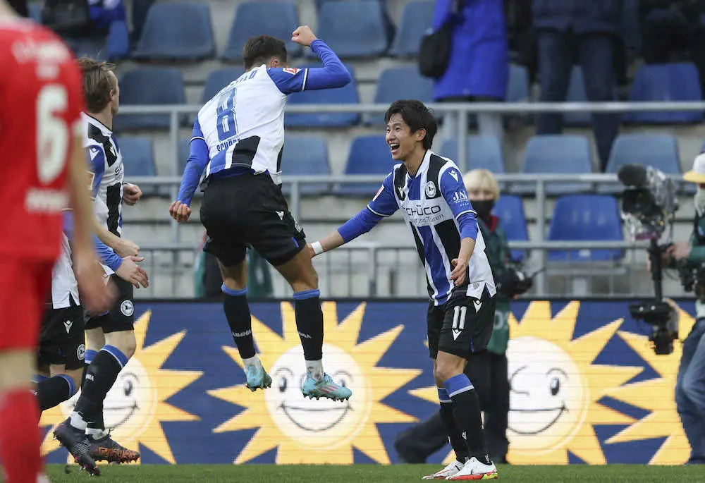 <ビーレフェルト>FW奥川は19日、ウニオン・ベルリン戦に先発し、4戦ぶりとなる今季8ゴール目を決め、1―0の勝利に導いた。後半8分、ペナルティーエリア内の右から右足でゴール左隅に突き刺した。
