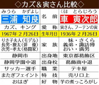なぜ今、寅さんなのか。直近3年ほどカズも出場機会の少ない「つらい」時期を過ごした。和ませてくれたのが「男はつらいよ」だった。好きなマドンナ役を選び何度も見た。毎度、恋は成就はしないが、人情味とユーモアにあふれ、カズは親近感を持つ。何より「人を上にも下にもみない。そういうスタンスに引かれる」と言う。