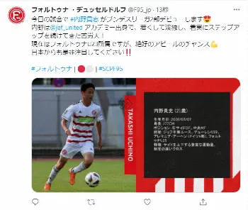 デュッセルドルフU―23所属DF内野貴史がトップチームデビュー ブンデス2部・パーダーボルン戦