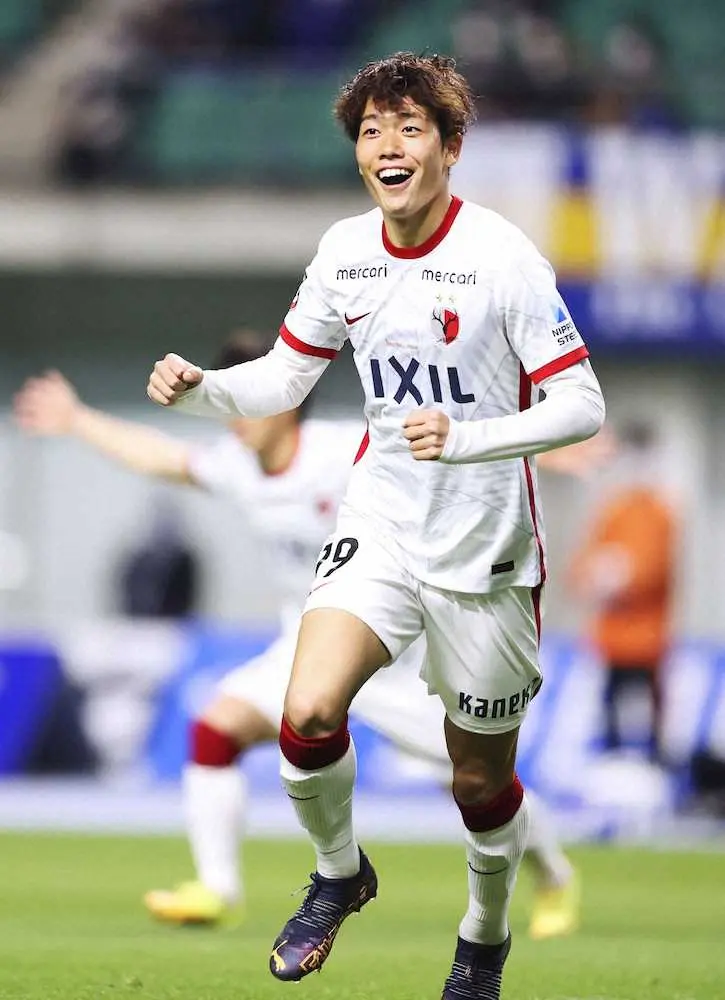 前半、先制ゴールを決めて駆けだす鹿島の染野