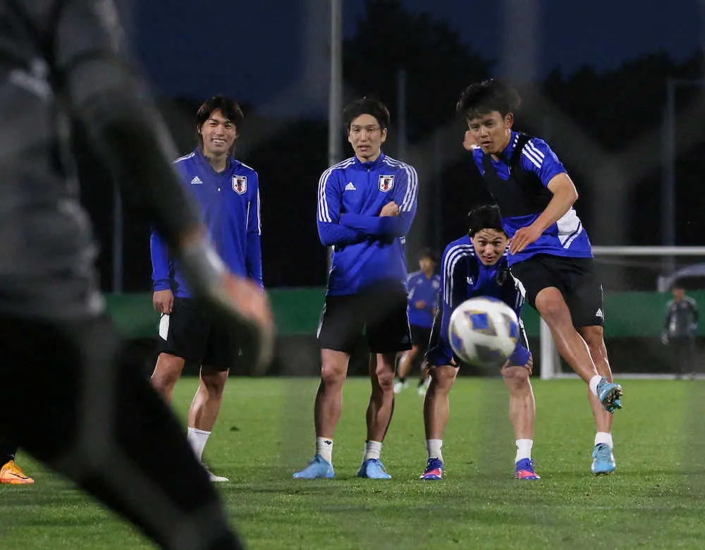 オーストラリア戦で出番のなかった旗手は、所属クラブのセルティックで務め、代表でも熱望するインサイドハーフに入った。出場すれば国際Aマッチデビュー。「(守田、田中に比べ)攻撃的な選手なので結果を求めていかないといけない」とゴールやアシストへの貢献で、“下克上”を狙う。練習には23人が参加し、中谷のみ宿舎で調整した。
