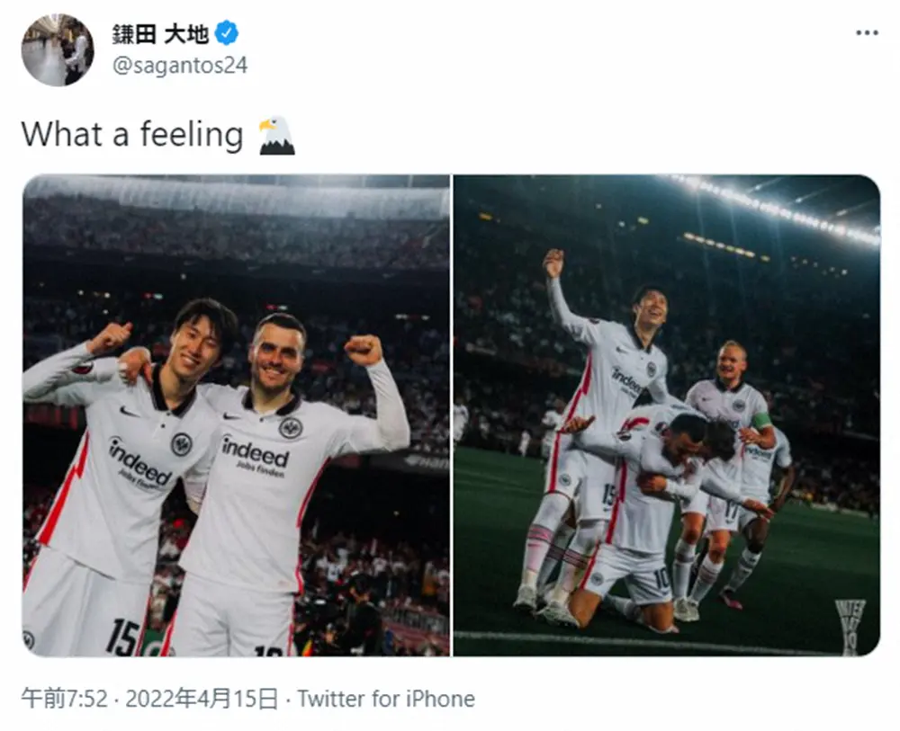 <バルセロナ・Eフランクフルト>後半、ゴールを決めたコスティッチ(左)と抱き合って喜び合う鎌田(ロイター) 鎌田大地 優勝候補バルサからの歴史的金星喜ぶ!ネット歓喜「なんて素晴ら… ギャラリーで見る この記事のフォト 2022年04月15日の画像一覧 もっと見る 2022年04月15日の画像をもっと見る