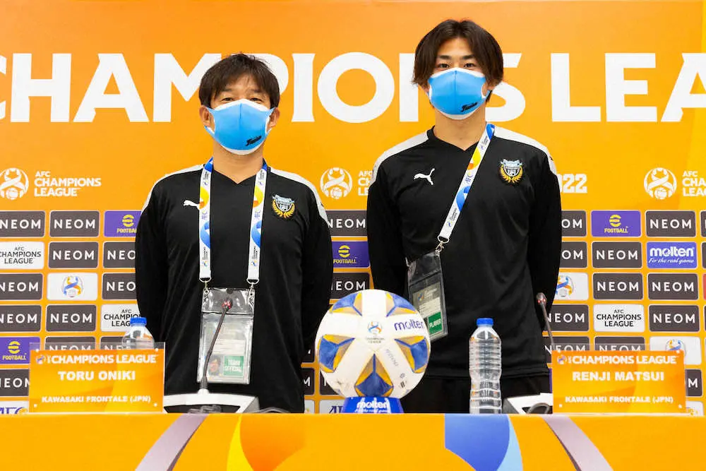 会見には今季法大から新加入したルーキーのMF松井蓮之(22)も出席。「諦めている選手は誰ひとりとしていない。チーム全員で勝つという気持ちを持って試合に臨みたい」と話した。自身は8―0で大勝した18日の広州FC戦でプロデビュー。警告を受け、前半で退いた。
