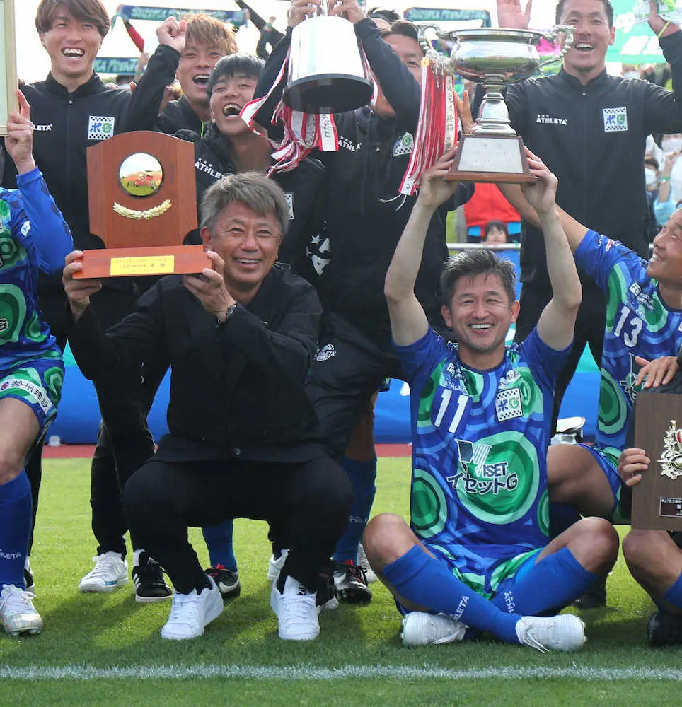 カズ 決めた!天皇杯本戦 鈴鹿3大会連続切符「しびれる」PK戦1番手、ど真ん中ズドン