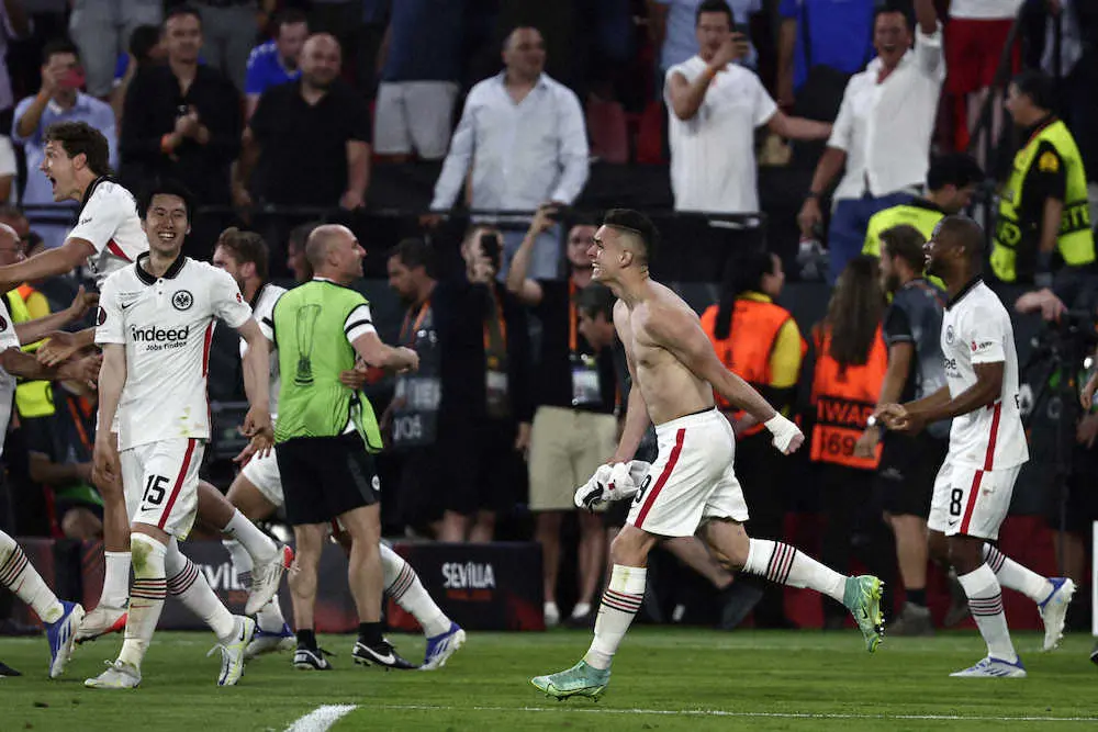 <Eフランクフルト・レンジャーズ>競り合うEフランクフルト・鎌田(AP) Photo by AP 鎌田、長谷部のEフランクフルトがPK戦を制し42年ぶり2回目の優勝 サッカ… ギャラリーで見る この記事のフォト 2022年05月19日の画像一覧 もっと見る 2022年05月19日の画像をもっと見る