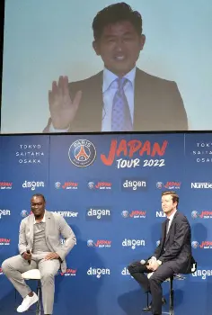 オンラインで出演したカズはエムボバ(左)、パリSG・アジア太平洋地域代表のバゼルと笑顔で話す(撮影・沢田 明徳) Photo by スポニチ 933億円軍団、パリSG 7月来日!20~25日に川崎F、浦和、G大阪と対戦 2022年05月27日の画像一覧 もっと見る 2022年05月27日の画像をもっと見る