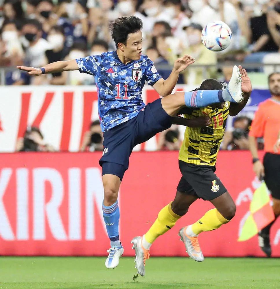 サッカー日本代表は10日、W杯カタール大会(11月21日開幕)に向けての強化試合「キリン杯」に臨み、同じくW杯に出場するガーナ代表と対戦。後半28分、久保建英(21=マジョルカ)がA代表初ゴールを決めた。