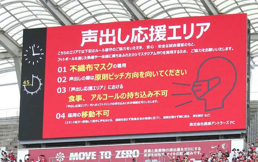 Jリーグが公表した資料によると、声出し応援エリアでのマスク着用率は99・7~99・8%、座席位置を守っている割合は94・5~97%、エリア外でのチャントが確認されなかったなど、多くの観客がルールを守っていた。また試合後に新型コロナウイルス陽性の判定を受けたとの報告はないという。