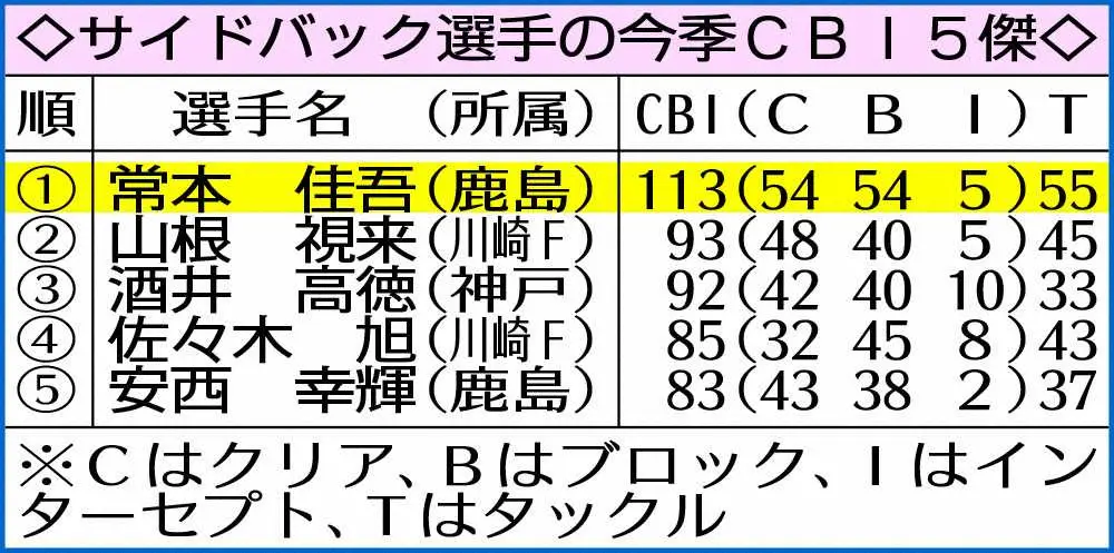 突出した守備能力で相手の左サイドを封じている鹿島・常本 Photo by スポニチ 【Jトピ~データで読み解く】鹿島・常本 右サイドの守備職人 CBI113回は… ギャラリーで見る この記事のフォト 2022年06月22日の画像一覧 もっと見る 2022年06月22日の画像をもっと見る
