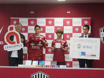 神戸 視界良好!コンタクトレンズ通販会社と契約締結 練習着の胸にロゴ、26日お披露目
