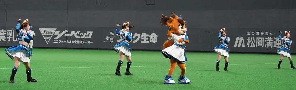 この横浜戦がニッポンハムグループサポーティングマッチということもあり、ファイターズガールの来場が実現。日本ハムの本拠地でしか見ることができない「きつねダンス」が、ヨドコウ桜スタジアムで披露される。