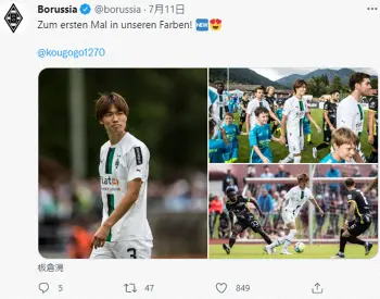 ボルシアMG・板倉 プレシーズンマッチで初実戦 ユーティリティー性アピール