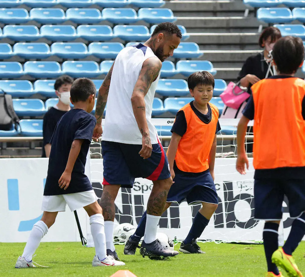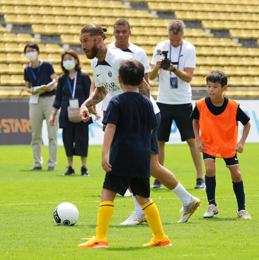 <パリSGサッカークリニック>参加者と記念撮影する(左から)ガルティエ監督、セルヒオ・ラモス、メッシ、エムバペ、ネイマール、マルキーニョス(撮影・沢田 明徳) Photo by スポニチ パリSGが都内でサッカー教室 メッシは「何よりも楽しむことが重要」とア… ギャラリーで見る この記事のフォト 2022年07月18日の画像一覧 もっと見る 2022年07月18日の画像をもっと見る