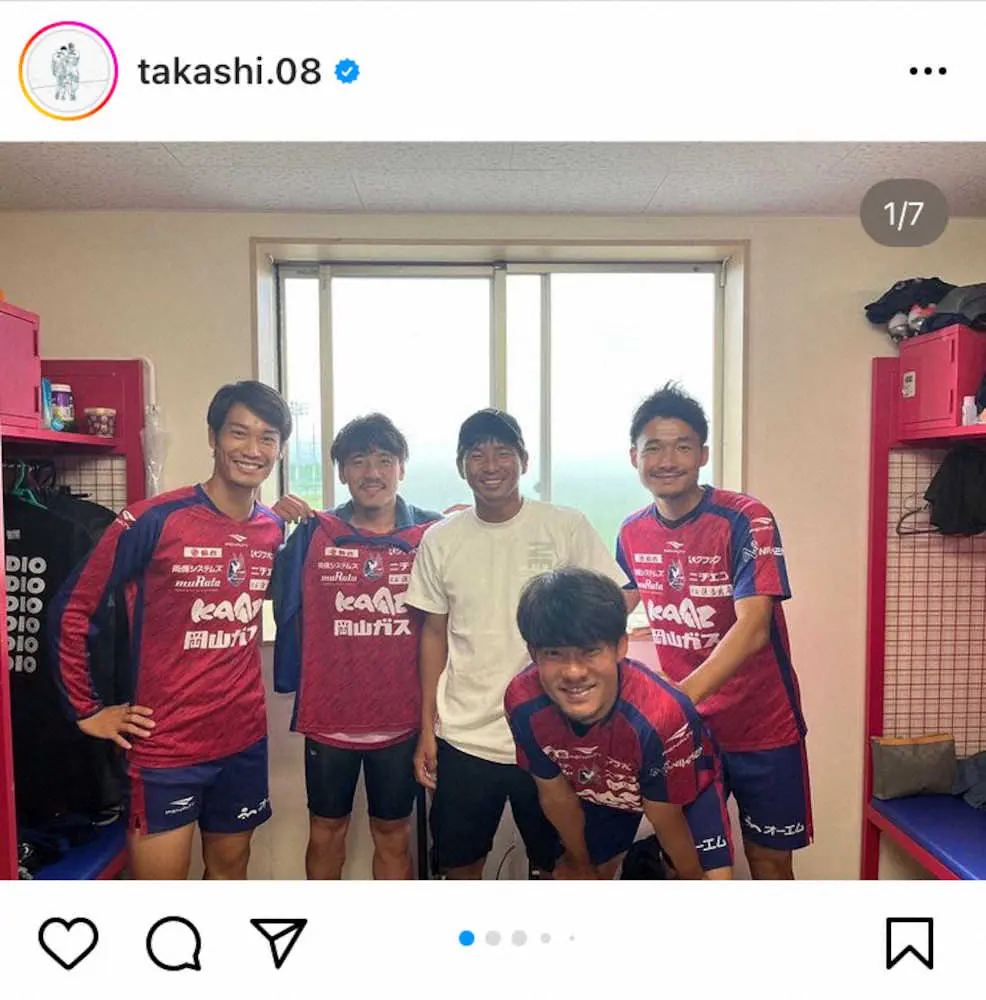 乾は「岡山の皆さん、ほんまに1ヶ月間ありがとうございました!! 木山さんが練習に誘ってくれて、チーム関係者、チームスタッフの方々が了承してくれて、選手の皆んなが行った日から凄く仲良くしてくれて、ほんまに救われました」と投稿した。